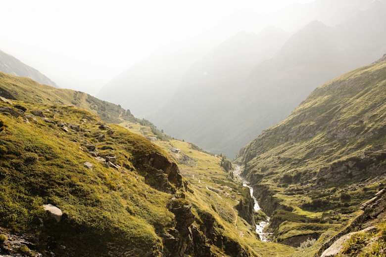 Für den Rückweg kann man den oberen Weg wählen. Dazu folgt man dem Wanderweg noch ein kleines Stück taleinwärts Richtung Franz-Senn-Hütte bis zur Weggabelung. Hier hält man sich rechts und wandert wieder zurück zur Oberissalm.