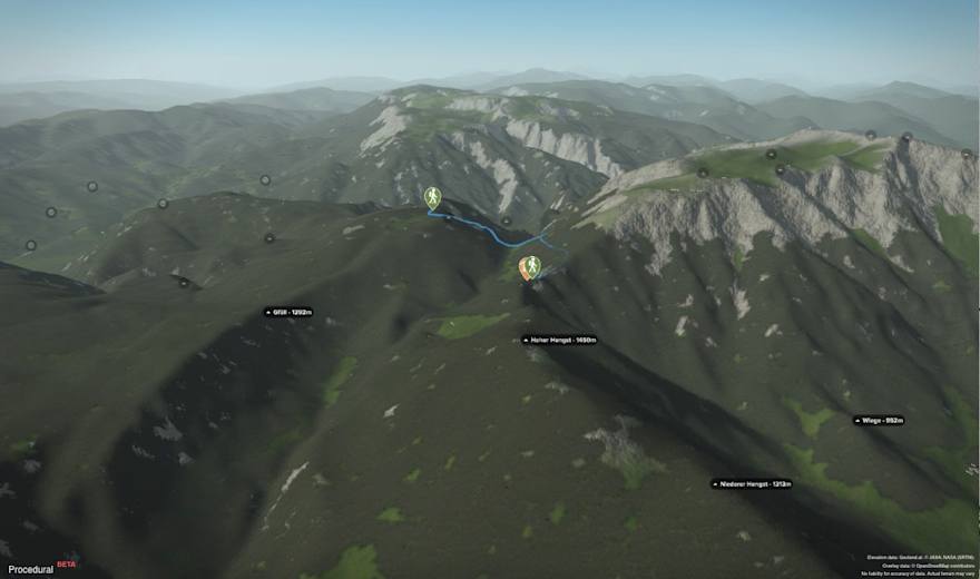 Von der Haltestelle Baumgartner folgt man links dem gelb markierten Steig leicht abwärts. Bald schon trifft man auf einen Forstweg, dem an nun ein Stück weit folgt. Wo er eine Biegung nach Osten macht, zweigt rechts ein kleiner Steig ab, der über eine Wiese weiter abwärts zum Krumbachsattel führt.