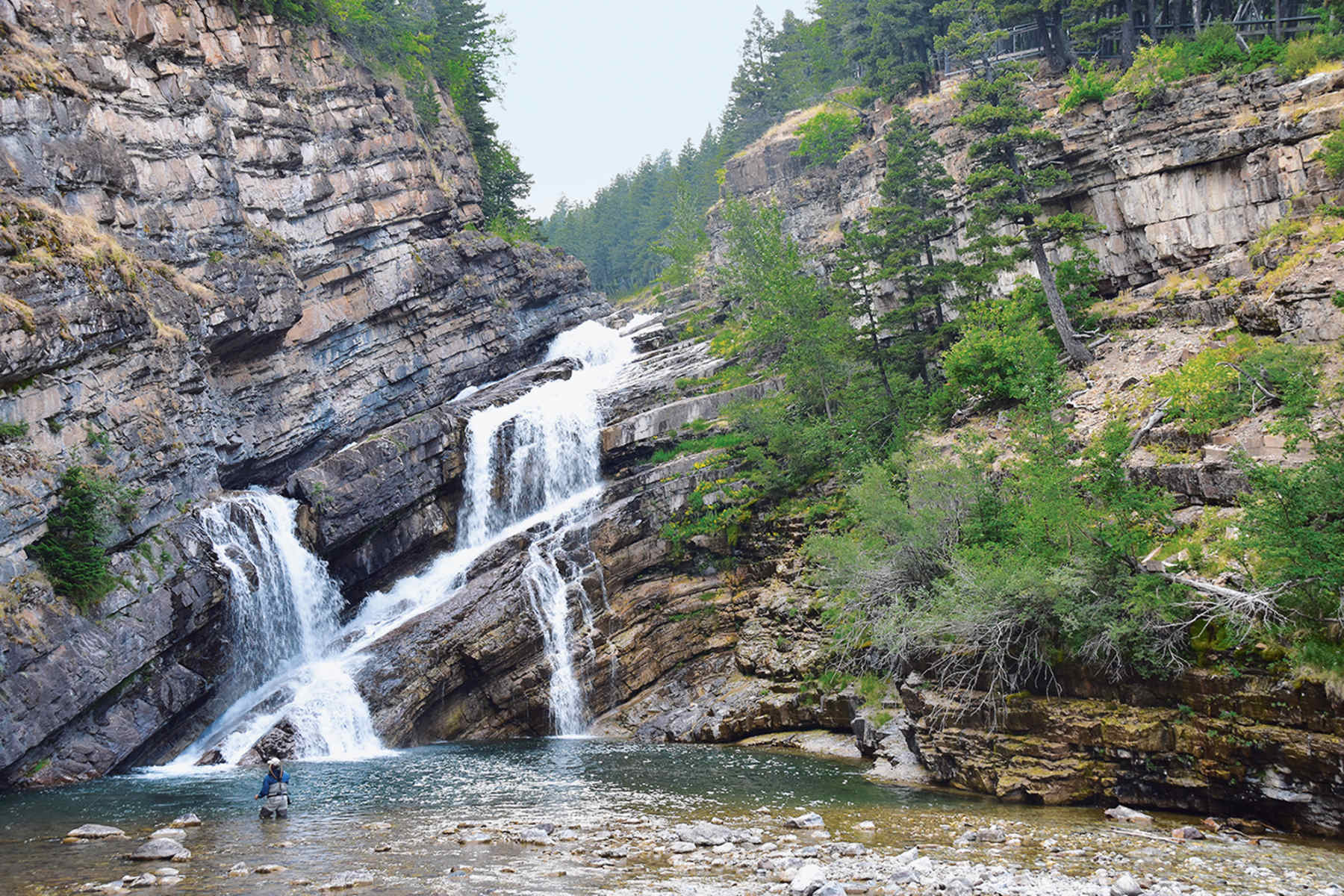 Der Fels der Cameron Falls zählt zu den ältesten sichtbaren Gesteinen der Rockies. Foto: Verena und Analena Schmidt