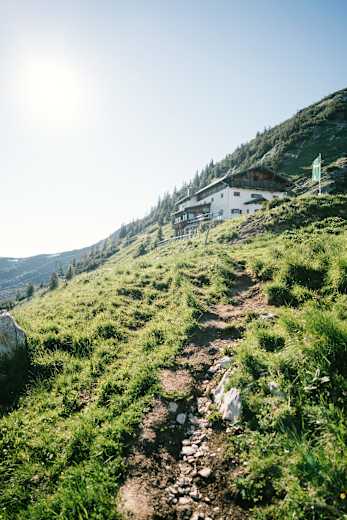Die letzten Meter zur Hütte führen über Almwiesen. Foto: Elias Holzknecht, Bergwelten Magazin 02/2017