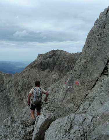 Die Mädelgabel mit ihren 2.645 m ist einer der schönsten Aussichtsberge in den Allgäuer Alpen direkt an der Grenze zwischen Tirol und dem Allgäu. Sie ist vom Waltenberger Haus über den Heilbronner Weg zu erreichen.