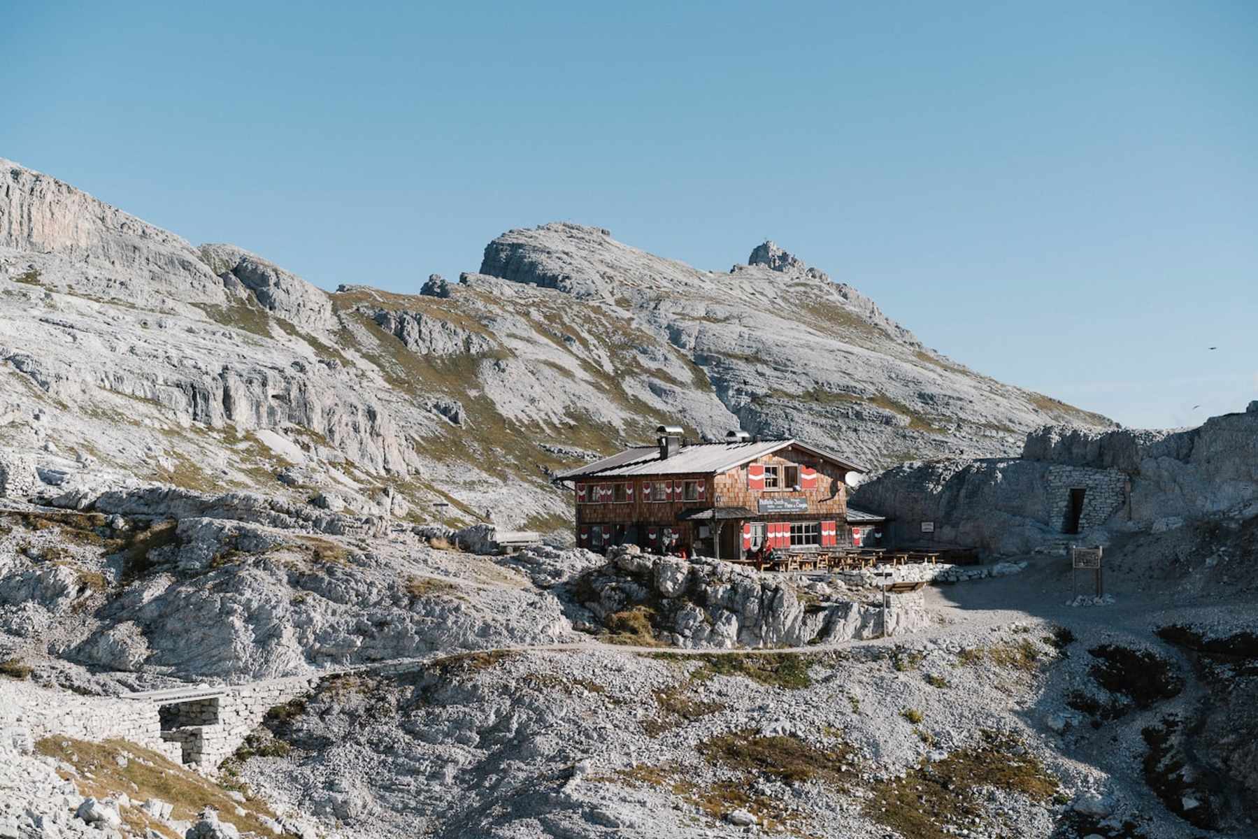 Die Büllelejochhütte auf 2.528 m in den Sextener Dolomiten unweit des Büllelejochs und am Fuße der Oberbachernspitzen ist nicht nur von Süden, sondern auch von Norden, vom Fischleintal aus, zu erreichen. Entweder man geht dabei über die Zsigmondyhütte oder - wie hier beschrieben - über die Drei-Zinnen-Hütte.
