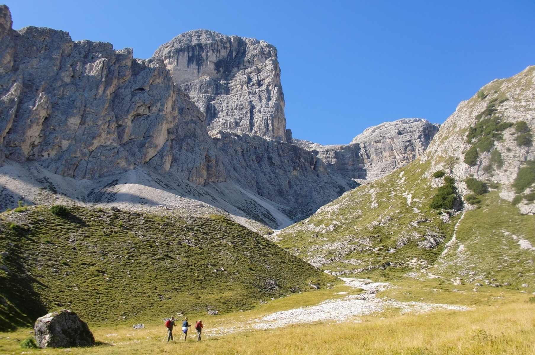 Wer möchte, kann von hier über den „Crep das Dodesc“ (2.384 m), den Zwölferkofel von Longiarü besteigen.