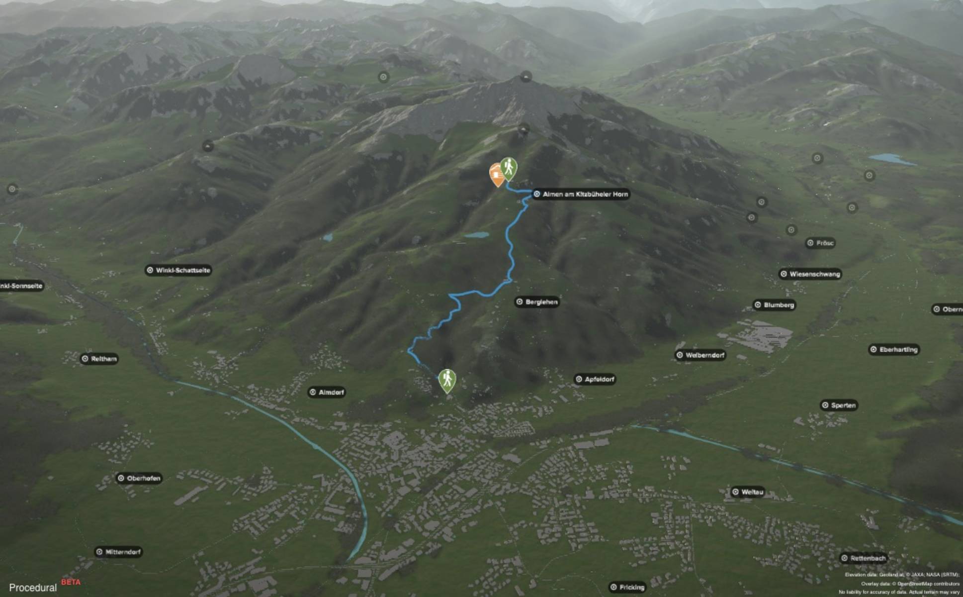 Die Angerer Alm befindet sich auf ziemlich genau 1.300 m am Nordhang des Kitzbühler Horns oberhalb von St. Johann in Tirol. Es gibt zahlreiche Wege, die sich zum Kitzbühler Horn und zu den diversen Almen aufwärts schlängeln. Hier eine Route, die beim Parkplatz der Seilbahn beginnt und über Fahrstraßen und Wanderwege bis zur Angerer Alm führt.