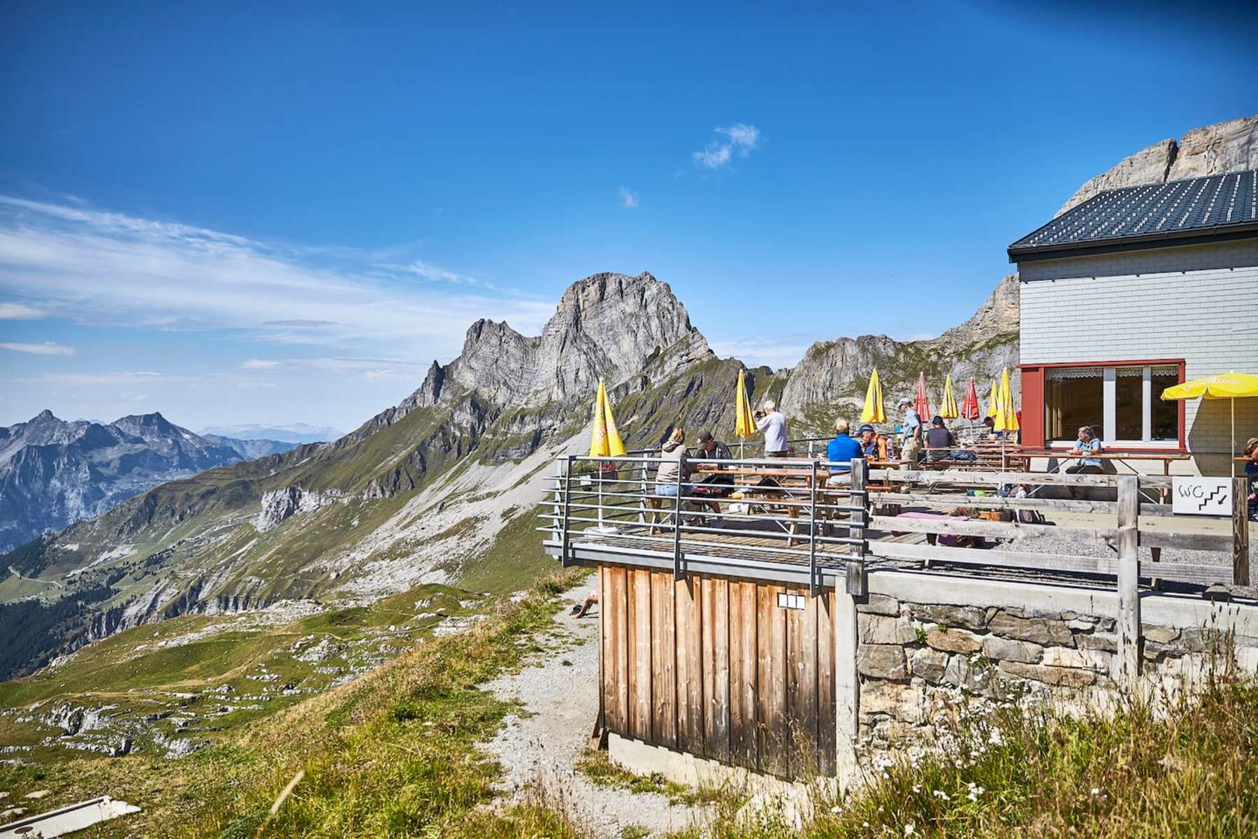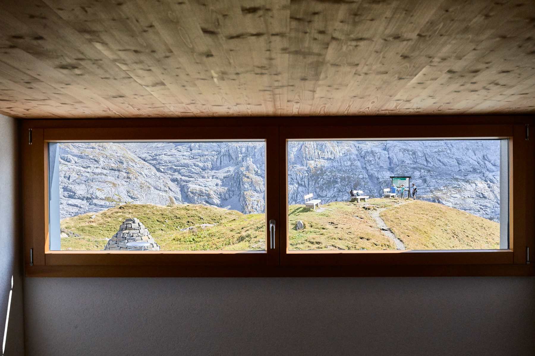 Auch wenn die Terrasse lockt, sitzen zu bleiben: Die Rugghubelhütte ist Ausgangspunkt für zahlreiche Wander-, Gipfel- und Klettertouren, zum Beispiel auf den Grossen Sättelistock (Mitte). Foto: Stefan Kürzi, Bergwelten Magazin Schweiz 02/2019 Der Blick aus diesem Fenster verrät nicht viel vom tollen Panorama. Foto: Stefan Kürzi, Bergwelten Magazin Schweiz 02/2019 Eine Kombination aus Stein- und Holzwänden schafft eine rustikale, aber zugleich gemütliche Atmosphäre. Foto: Stefan Kürzi, Bergwelten Magazin Schweiz 02/2019 Bildergalerie (3)