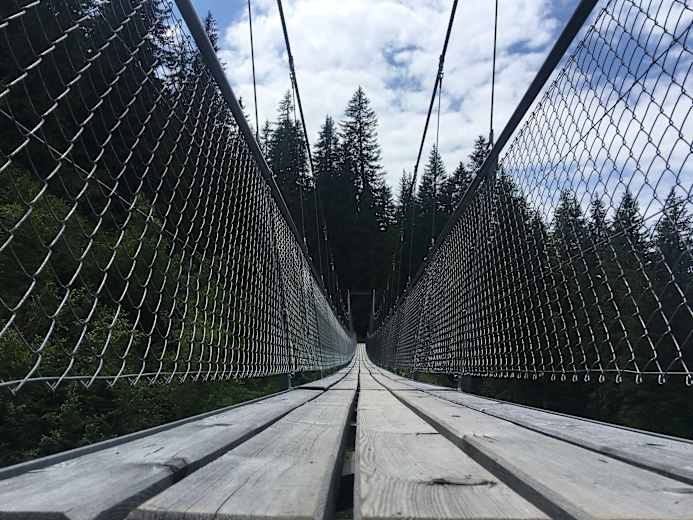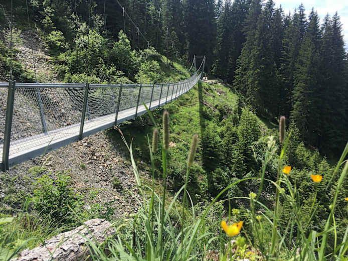 Die imposante Hängebrücke über das Grüsttobel Foto: Prättigau Tourismus
