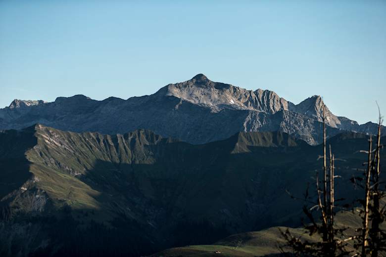 Unterwegs lohnt ein Abstecher auf den breiten Rücken des Stelserbergs. Von hier oben hat man einen tollen Blick auf die grossen Rätikon-Kalkwände.