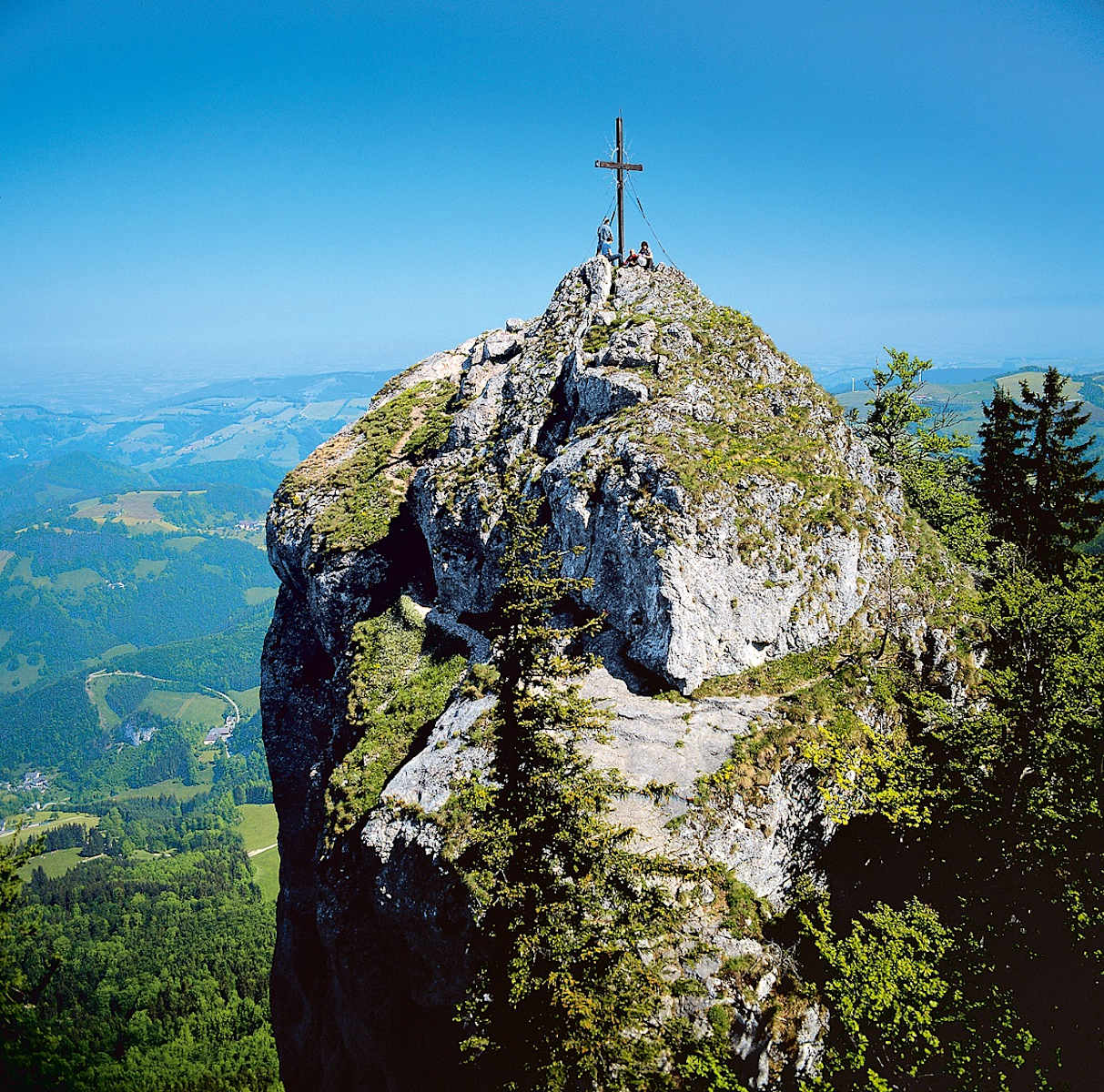 Großartiger Aussichtsberg über Losenstein und dem Ennstal: Der hübsche Nagelschmiedeort Losenstein wird nicht nur von einer der größten Burgruinen des Landes überragt, sondern auch vom steilflankigen Felsberg Schieferstein (1.206 m), der trotz seiner bescheidenen Höhe als einer der attraktivsten "Zapfen" des unteren Ennstals gilt.