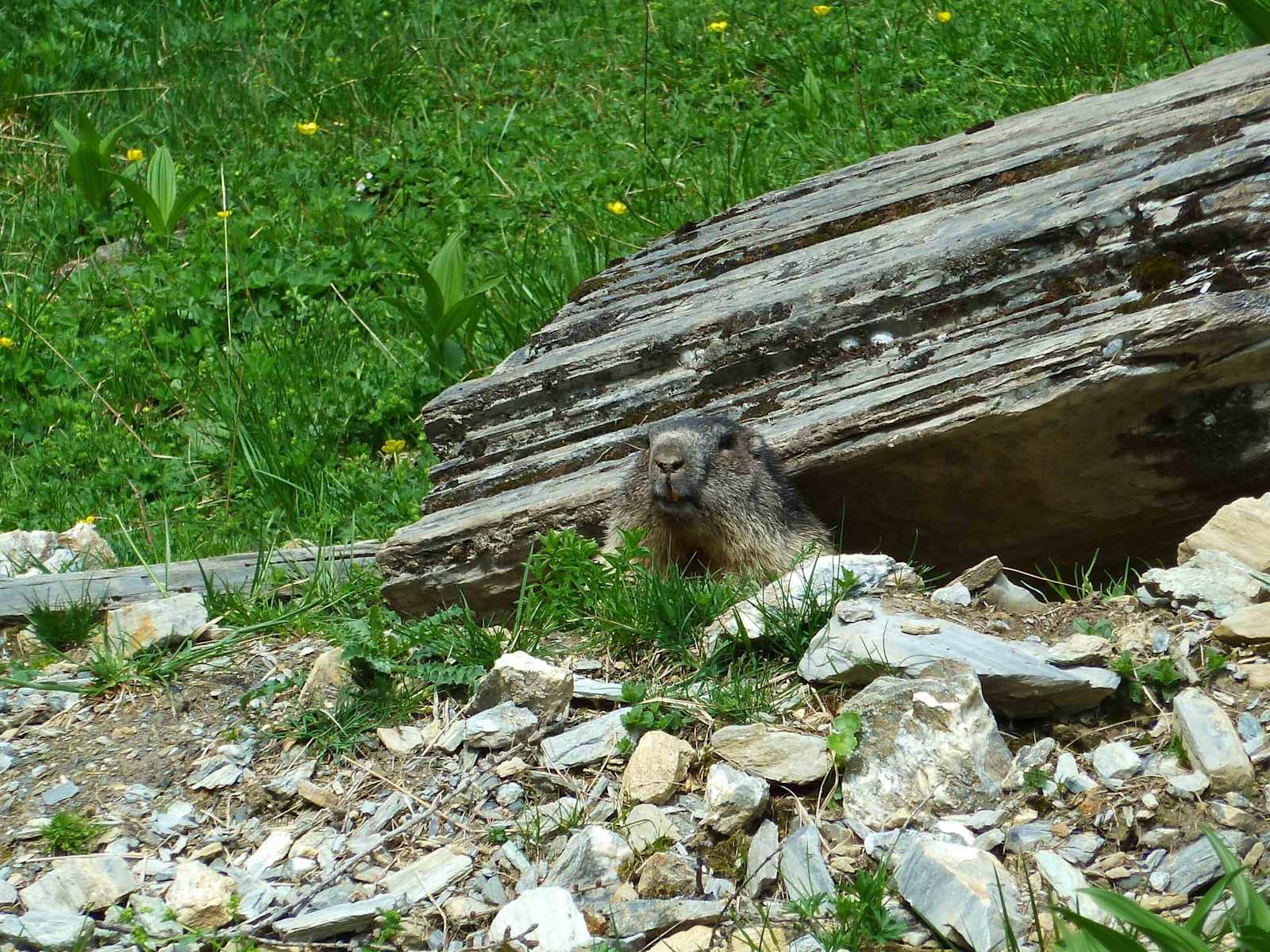 Junge Murmeltiere, die Affen, wie sie richtig genannt werden, im Frühling zu beobachten ist eine wahre Freude: übermütig tollen die kleinen Nager über die Wiese und freuen sich über das Leben.