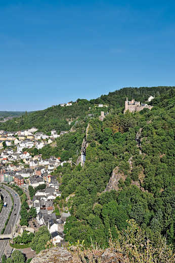 Der Rest ist eine Art Triumphzug – oder eine Quälerei, wenn man am Ende seiner Kräfte ist. Im zweiten Fall sollte man darauf achten, vor Müdigkeit nicht noch zu guter Letzt auf den teilweise recht steilen Stufen zu stürzen, auf denen man direkt in die Fußgängerzone von Idar-Oberstein , 272 m, gelangt. 15 Min. ab Schloss Oberstein. Man erreicht sie in der Nähe des Deutschen Mineralienmuseums im Stadtteil Oberstein.