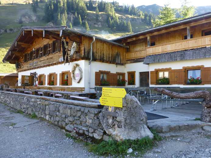 Von der Hütte (1.953 m) geht es wieder zurück bis zur Abzweigung aus Etappe 1. Der Weiterweg führt nun auf relativ gleichbleibender Höhe, zum Teil etwas ausgesetzt bis zum westlichen Lamsenjoch (1.940 m).