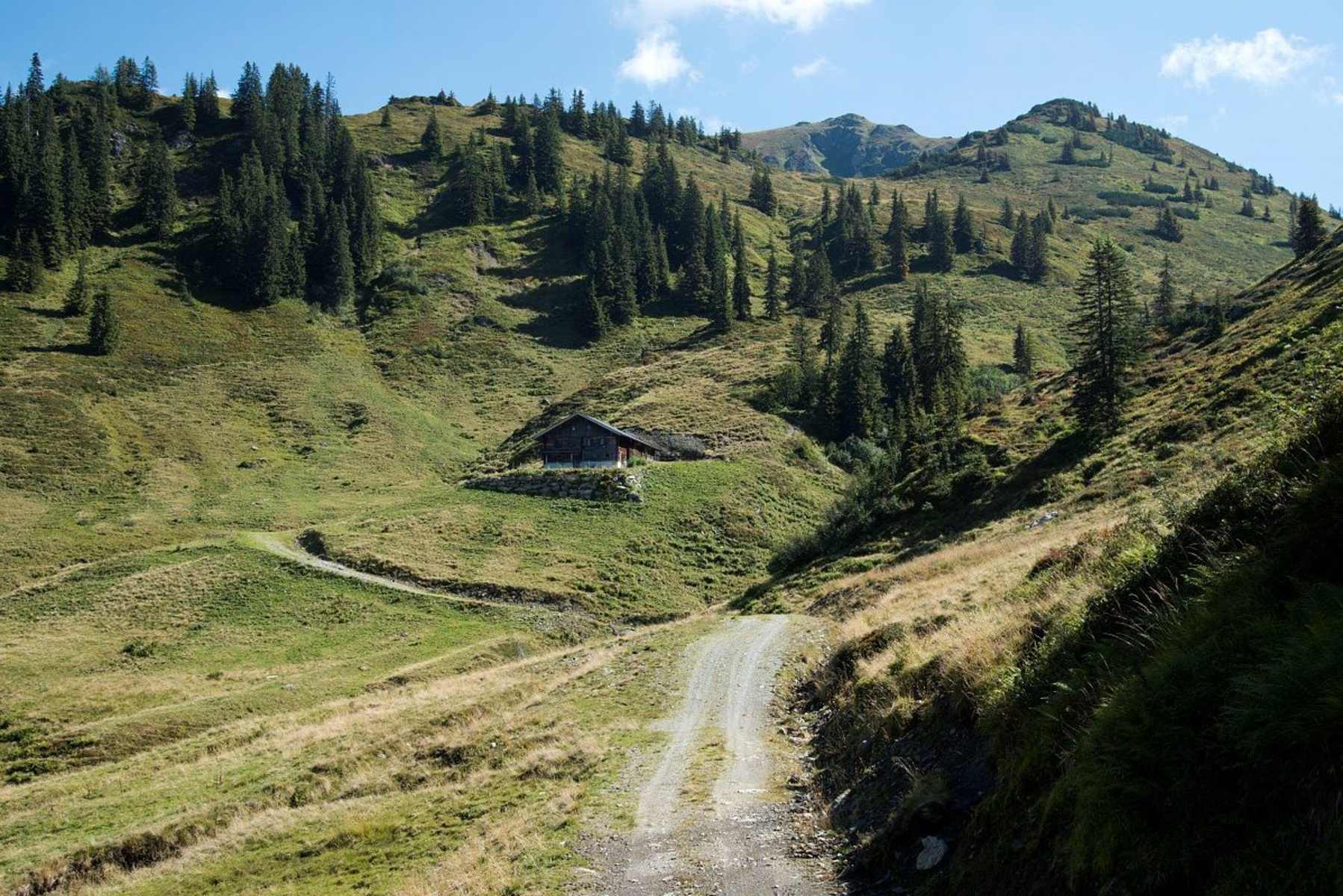 Zurück am Joch folgt man der Beschilderung „Westendorf“ entlang des Bergrückens aufwärts, bevor ein Steig zur „Lärchenbergalm“ links abzweigt. Über die schönen Almwiesen erreicht man bald die Oberkaralm, quert einen kleinen Graben und erreicht auf dem Weg 79 bald die Lärchenbergalm auf rund 1.480 m.