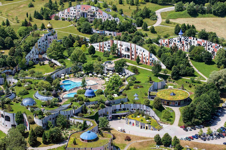 Die Vulkania Heilquelle der Hundertwasser-Therme in Bad Blumau ist die stärkste Thermalquelle des Thermenlandes und entspringt in einer Tiefe von 2.843 m. Sie tritt mit einer Temperatur von ca. 110°C an die Oberfläche.