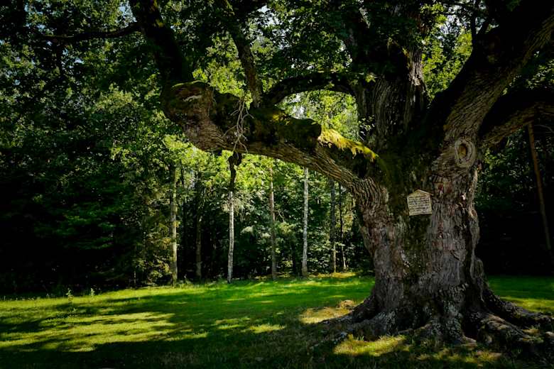 Weiter geht es durch den Thermenpark ins Zentrum des schönen und beschaulichen Ortes Bad Blumau. Man spaziert weiter in den Ortsteil Loimeth, wo der 07er wieder gut beschildert weiterführt. Durch angenehm schattigen Wald geht es zur Bierbaumer Höhe, wo die „Tausendjährige Eiche“ steht. Sie dürfte die älteste Eiche Europas sein, misst eine Höhe von 30 m und einen Stammdurchmesser von 2,5 m.
