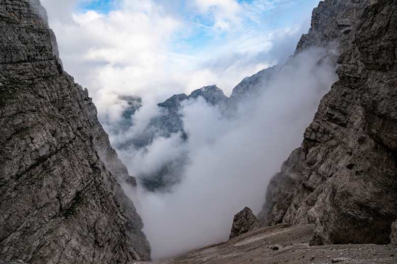 Das Ziel der hier beschriebenen 3. Etappe, die bei der Bosi-Hütte („Rifugio Bosi“) am Monte Piana beginnt, ist das Rifugio Vandelli in der Sorapiss-Gruppe.