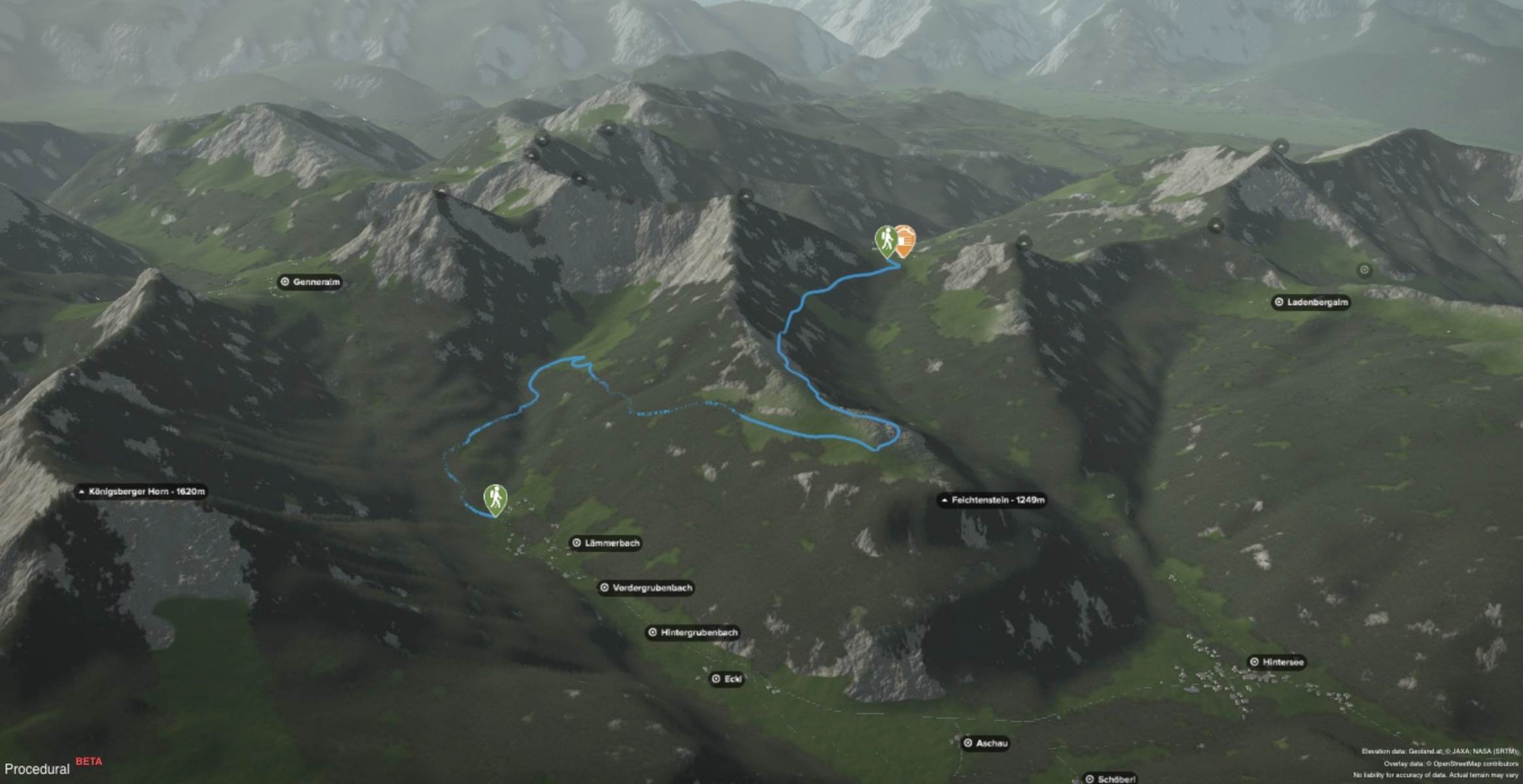 Von der Mautstellen wandert man ein Stück entlang der Straße aufwärts, bis recht eine Fahrstraße zur Gruberalm und zur Mayerlehenhütte abzweigt. Dieser folgt man und kann sie nach Überqueren des Gruberbaches links zugunsten eins Wandersteiges verlassen, der direkt zur Mayerlehenhütte führt.