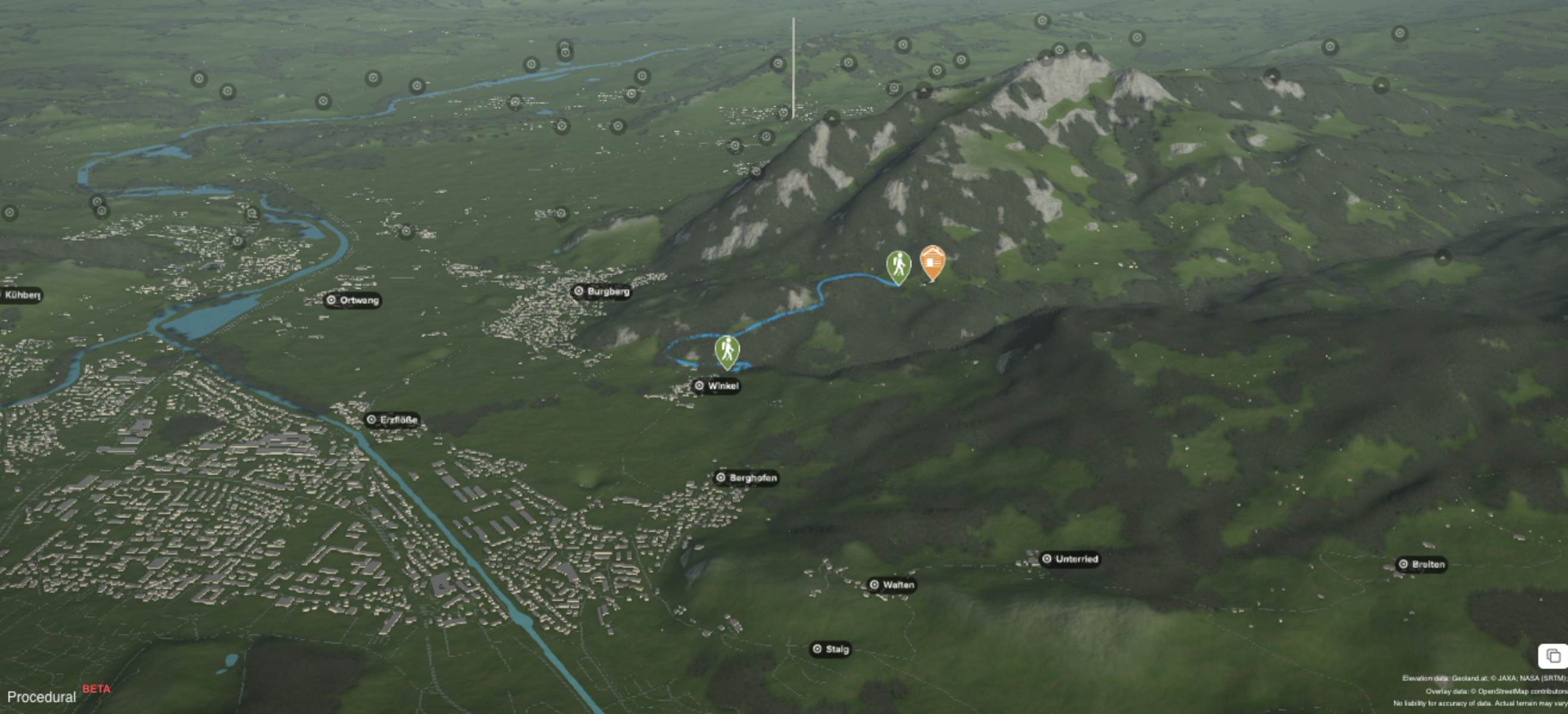 Großer kostenpflichtiger Parkplatz im Ortsteil Winkel am Gasthaus Sepplwirt, 765 m.
