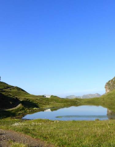 Auf der zweiten Etappe der Tour folgt man den Spuren der Walser durch die Hochtäler Graubündens: Von Davos geht es zunächst auf die Latschüelfurgga (2.405 m). Der Anstieg fordert einiges an Kondition. 1.200 Hm wollen am Stück bezwungen werden. Dafür gibt es auf der Alp Medergen, eine ursprüngliche Walseralp, eine wohlverdiente Stärkung. bevor das Schlussstück über den Stausee Isel nach Arosa in Angriff genommen wird.