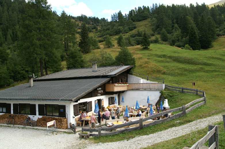 Wer am ersten Tag genügend Zeit hat, der kann auch mit der Bergbahn bis zur Bergstation am Nösslachjoch fahren und von dort über das Gstreinjöchl direkt zur Tribulaunhütte wandern - rund 6 h.