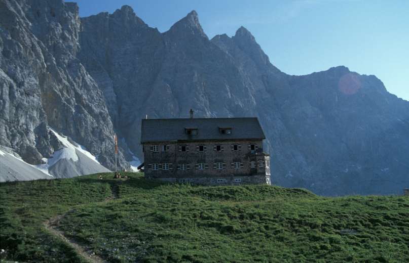 Die Falkenhütte vor den Laliderer Wänden Foto: Christina Schwann, ökoalpin Bildergalerie (6)