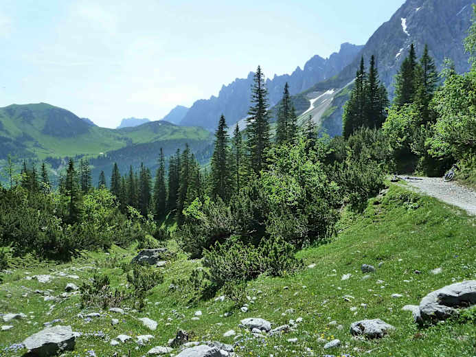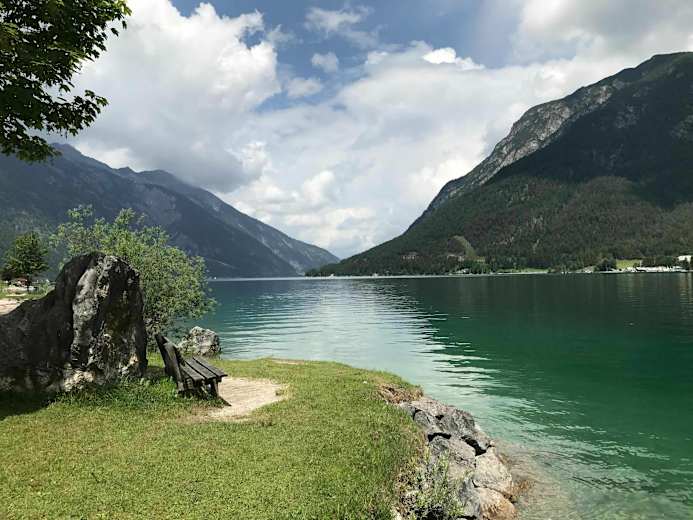 Bis zum Alpengasthof Falzthurn führt parallel zur Mautstraße und zum, mit viel Karwendelschotter gefülltem, Bach ein breiter Wanderweg. Ab dem Alpengasthaus wandert man auf dem Fahrweg rechts der Mautstraße talauswärts. Schließlich erreicht man den Parkplatz bei der Mautstelle und damit auch den Ort Pertisau. Man hält sich rechts und wandert durch den Ort bis hinunter zum schönen Achensee. An warmen Sommertagen gibt es kaum etwas Erfrischenderes, als zumindest die Füsse ins Wasser zu strecken.