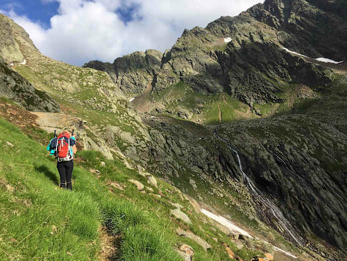 Vor der Bremer Hütte hat man gleich am Morgen die Qual der Wahl: entweder man steigt über den leichten Klettersteig zum Lautersee auf, oder aber man nimmt den Weg 124 (Stubaier Höhenweg), der weiter oben mit dem Weg vom Lautersee zusammen trifft.