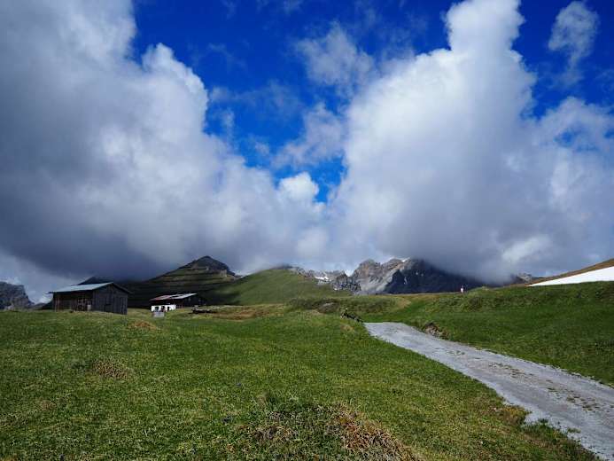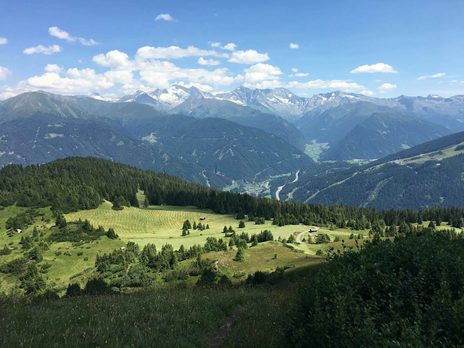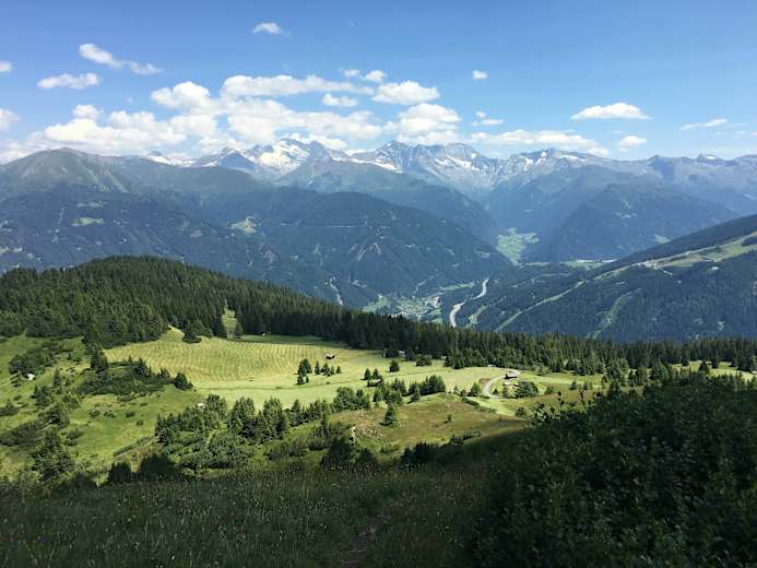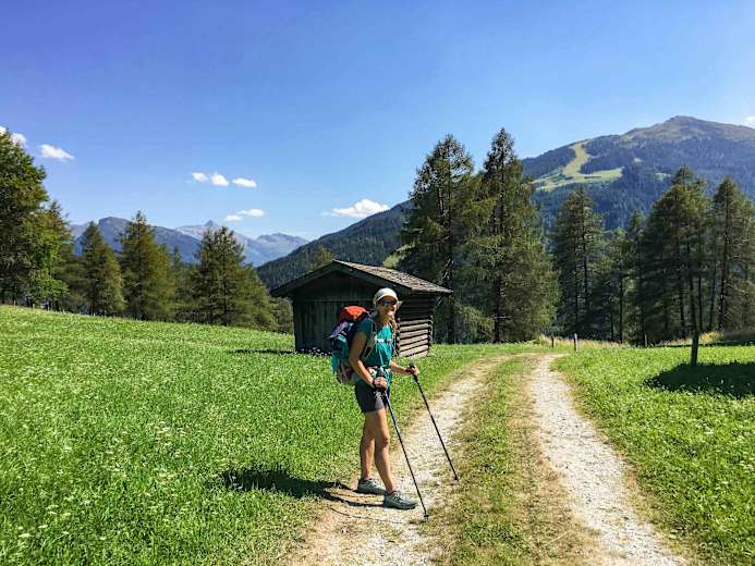 Von der Blaser Hütte nimmt man den Weg Nr. 13, der die Forststraße abkürzend, abwärts führt. Kurz oberhalb der Waldgrenze zweigt der Weg nach Steinach/Wipptalerhof ab. Über die blumenreichen Pfutschwiesen geht es abwärts und in den Wald.