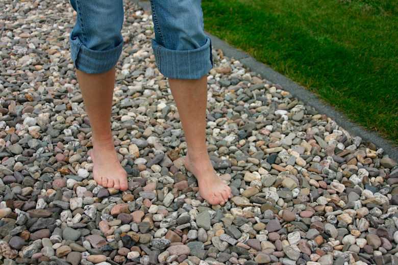 Den Barfußpfad im Park von Bad Marienberg sollte man sich nicht entgehen lassen. Es ist die reine Wohltat, aus den Wanderschuhen zu kommen und die spitzen und runden Steine, Tannenzapfen und Hölzer sowie auch Tannenreisig unter den Fußsohlen zu spüren.