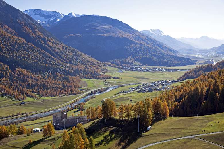 Auf der Route 27 von Zernez oder St. Moritz nach Zuoz.