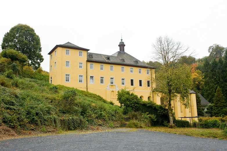 Vom Beulskopf geht es durch den Wald abwärts, vorbei an Oberirsen und in einer Schleife von Norden bzw. von Nordwesten nach Weyerbusch.