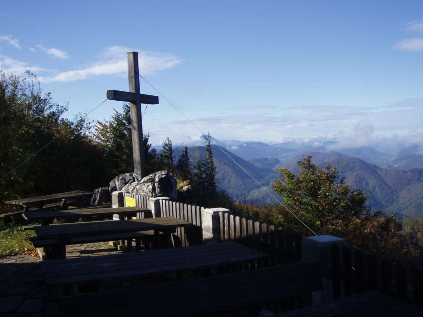 Bei entsprechenden Verhältnissen bietet sich vom Gipfel eine grandiose Aussicht auf den Alpenbogen vom Schneeberg bis in das Gesäuse und zum Großen Priel, aber auch auf das Donautal und das Waldviertel.