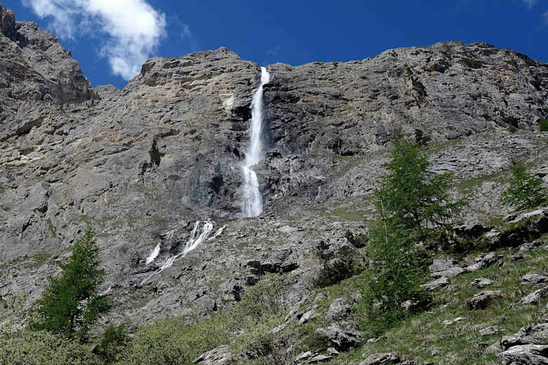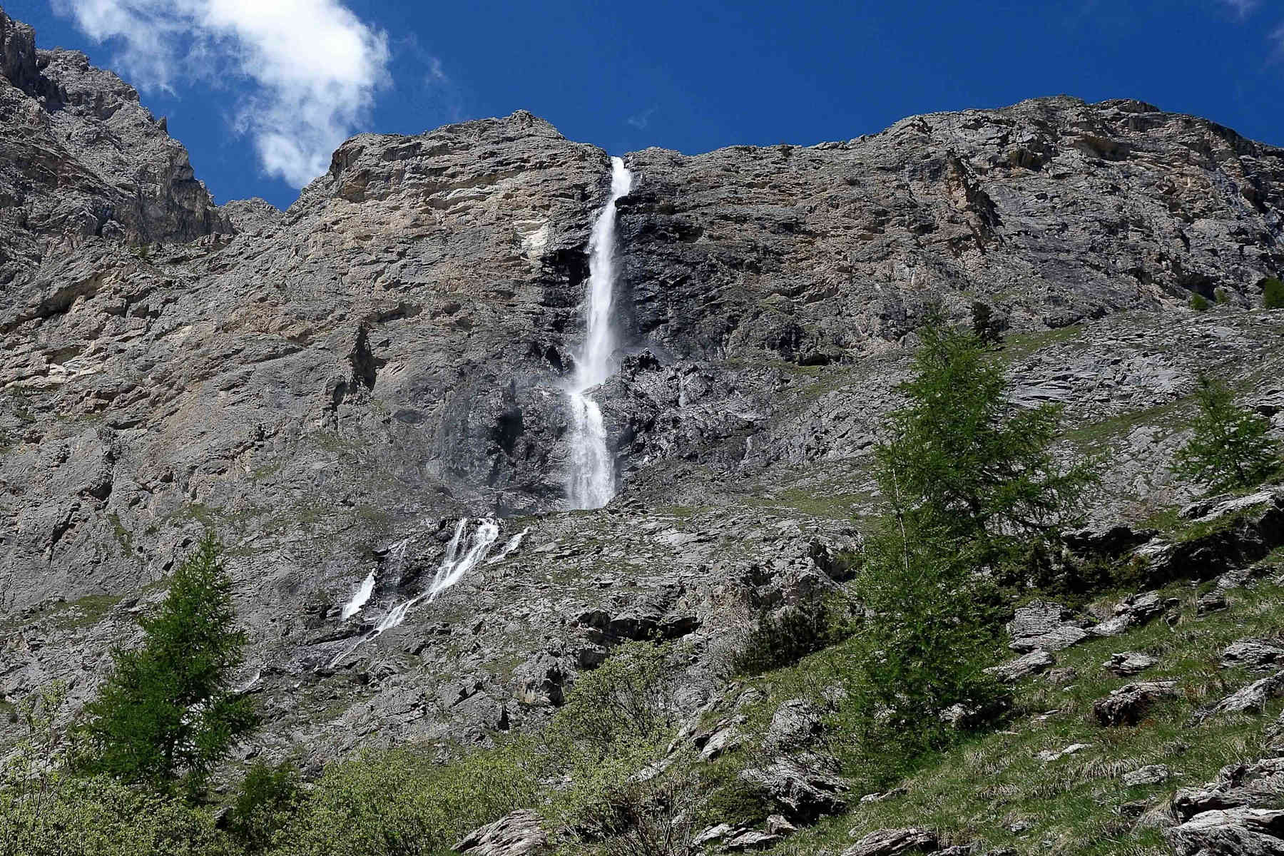 Man steigt steten Schrittes zum Sattel Colle Greguri auf, welcher den Gipfel Rocca Castello (2.452 m) vom Monte Eighier (2.574 m) trennt. Hier stößt man an einen Bunker aus der Zwischenkriegszeit. Jetzt führt der Weg abwärts, zunächst steil und dann flacher über sanfte Wiesen mit immer neuen, schönen Ausblicken zu den Wasserfällen von Stroppia, dem Monte Bellino, dem Passo Maurin und zu den Almhütten.