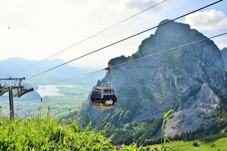 Wer für den Aufstieg die Rotenfluebahn benutzt, kann sich zu Beginn der Tour 1.000 Höhenmeter sparen. Von der Bergstation sind es dann nur noch wenige Kilometer bis zur Holzegg, dem Beginn des Bergwanderwegs.