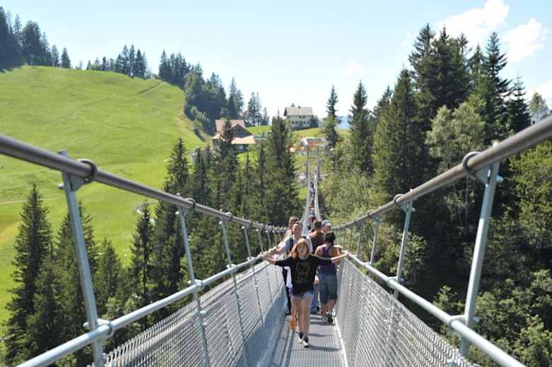 Die Raiffeisen Sky Walk, eine der längsten Hängebrücken Europas. Foto: Erhard Gick, Schwyzer Wanderwege