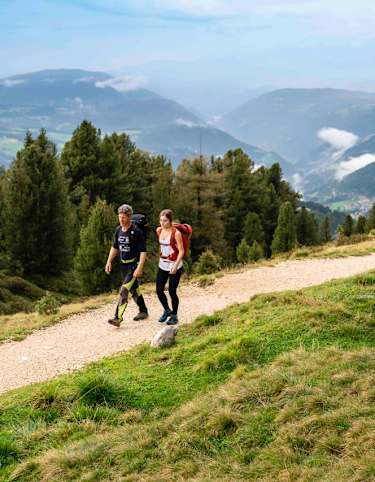 Typische Bauern- und Almprodukte werden den Wanderern schmackhaft präsentiert und die Rundwanderung verläuft durch schöne Almwiesen unterhalb der Geislerspitzen und des Peitler Kofels.