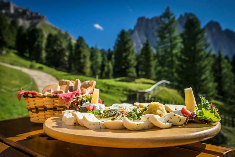 Eine schöne Genusswanderung inmitten einer spektakulären Bergkulisse im Naturpark Puez-Geisler. Die Villnösser Almen bieten mit typischen Gerichten einen großzügigen Einblick in die regionale Küche, die sich immer größerer Beliebtheit erfreut.