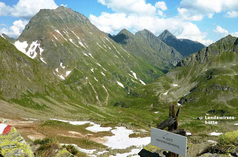 Von der Keinprechthütte steigt man am frühen Morgen ein keines Stück ab. Danach schwenkt der Weg nach Süden und es folgt der rund 3 km lange Anstieg zur Trockenbrotscharte auf 2.237 m. Von der Scharte blickt man in das Kar mit seinen steilen Hängen, in dem die Landawirseehütte bereits zu sehen ist. Die Hütte lädt nach dem Abstieg zur wohlverdienten Rast ein.