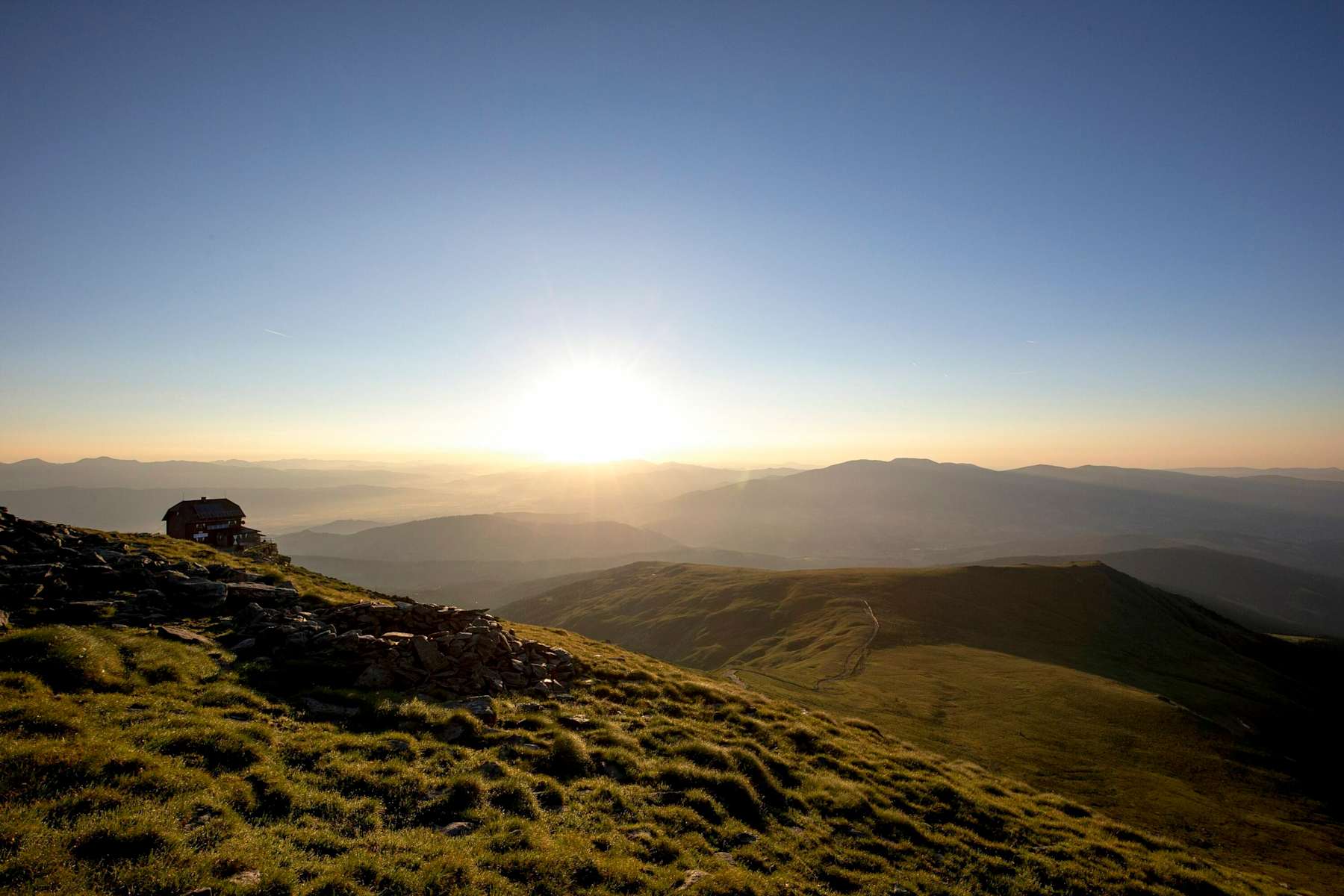 Von der Tonnerhütte geht es gleich zu Beginn der Tagesetappe aufwärts auf den Ziribitzkogel. Nur rund 20 m unter dem Gipfel befindet sich das Zirbitzkogel-Schutzhaus. Vom Gipfel genießt man einen herrlichen Blick über den Naturpark.