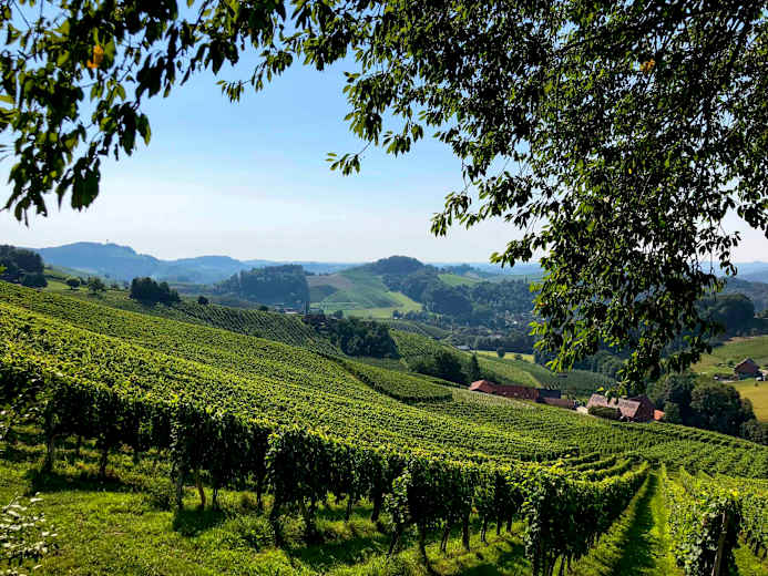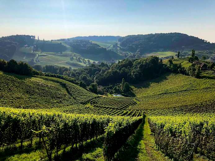 Durch Wälder, über Wiesen und entlang der Weingärten und vorbei am Loisium Spa und Wine Resort erreicht man schließlich den Etappenort Ehrenhausen, den Ausgangspunkt der Südsteirischen Weinstraße.