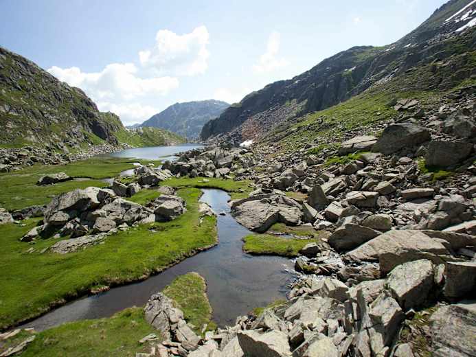Vom Oberalppass führt die Wanderung über Tschamutt zum Tomasee, der sich ganz idyllisch in eine kleine Mulde schmiegt. Hier beginnt der Rhein seine 1.230 m lange Reise nach Rotterdam, um dort ins Meer zu münden. Unterwegs erwartet den Wanderer die abwechslungsreiche Gebirgslandschaft des Gotthardmassivs mit vielen kleinen Bächen, Tümpeln und Seen.