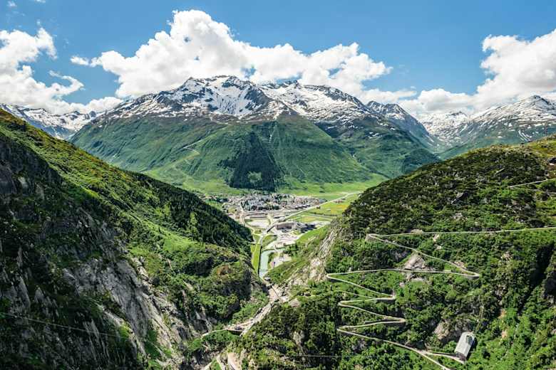 Schöllenenschlucht mit Urserntal Foto: Andermatt Tourismus - Valentin Luthiger