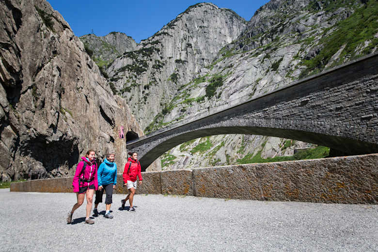 Ausgedehnte Wanderung im Zentralschweizer Kanton Uri vom Gotthardpass (2.106 m) hinab ins Urserntal und durch die berühmte Schöllenenschlucht nach Göschenen. Highlights der Tour im Gotthard-Massiv sind der gleichnamige Pass, das idyllischer Urserntal und die berüchtigte Teufelsbrücke.