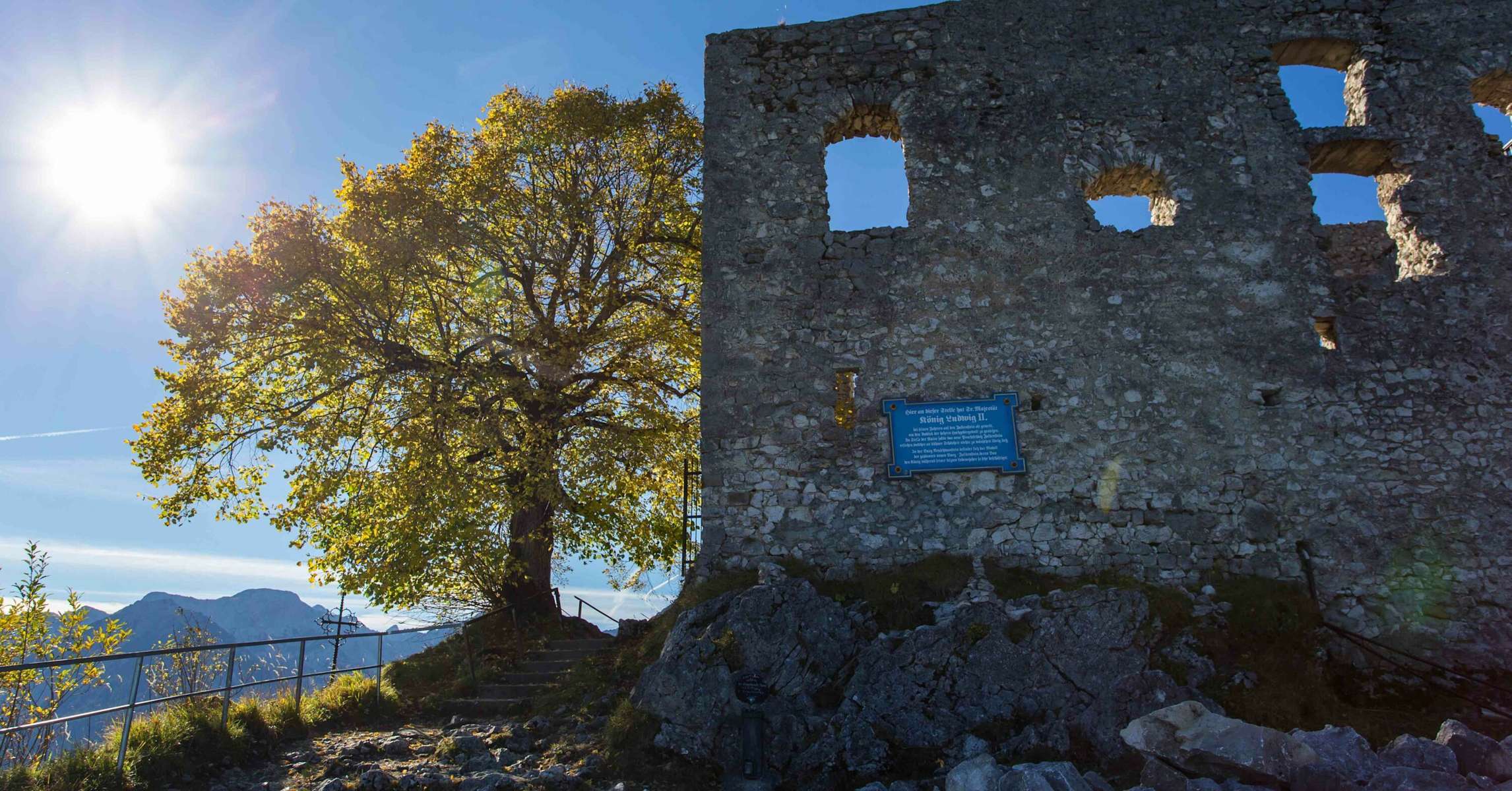 Schöne Wanderung auf Deutschlands höchstgelegene Burgruine, die Ruine Falkenstein auf 1.268 m im Ostallgäu. Von oben genießt man eine wunderbare Aussicht hinunter auf Pfronten und nach Tirol und mit dem Burghotel Falkenstein bietet sich zudem eine gediegene Einkehrmöglichkeit.
