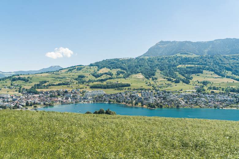 Waldstätterweg Etappe 3 - Blick auf Küssnacht - im Hintergrund die Rigi Foto: Luzern Tourismus | Laila Bosco Bildergalerie (6)