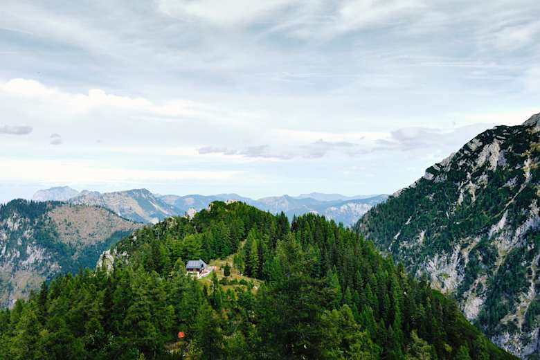 Blick auf das Ebenseer Hochkogelhaus Foto: Armin Walcher / Red Bull Media House Publishing, Disco 12-2024