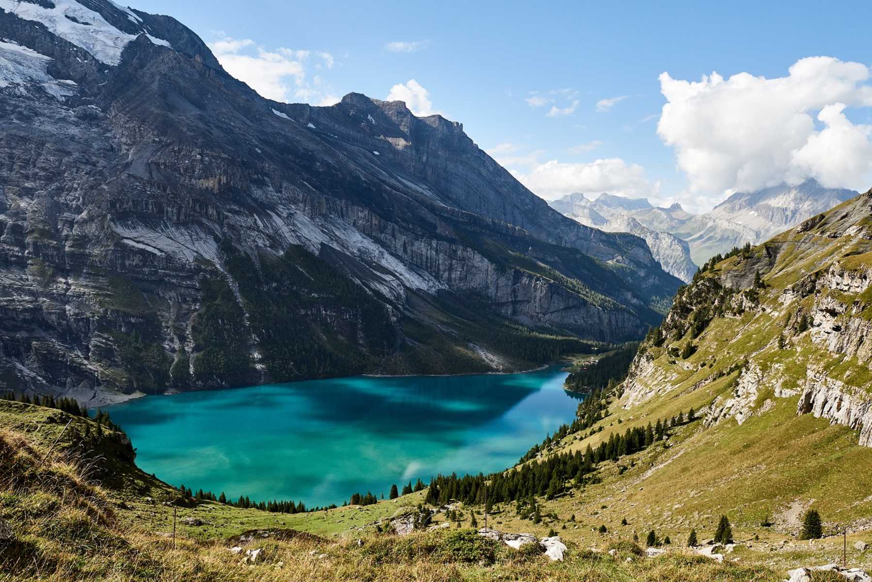 Die Panoramawanderung Heuberg gehört zu den schönsten Touren im Berner Oberland. Der Blick auf den türkisblauen See von den steil abfallenden Felswänden ist einfach gigantisch. Nicht ohne Grund ist der Oeschinensee UNESCO Weltkulturerbe. Die liebliche Blüemlisalp im Hintergrund macht das Bild perfekt. Unterwegs laden zahlreiche Berggasthäuser und Alpen zur Einkehr ein.