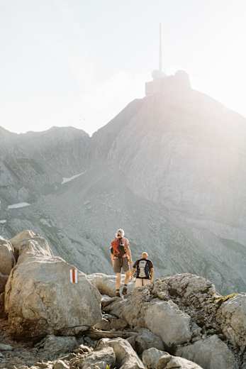 Der Säntis (2.502 m) gilt zurecht als eine der schönsten Bergkulissen Europas. Der höchste Gipfel im Alpstein beherrscht aufgrund seiner zentralen Lage nicht nicht nur Bodensee und Appenzell, sondern auch das Obertoggenburg. Vom Berggasthaus Tierwis (2.085 m) ist der imposante Berggipfel in einer guten Stunde erreicht. Wer die Tour angeht, sollte jedoch schwindelfrei und trittsicher sein, denn die Route führt über den felisgen Gratrücken des Grauschopfs.