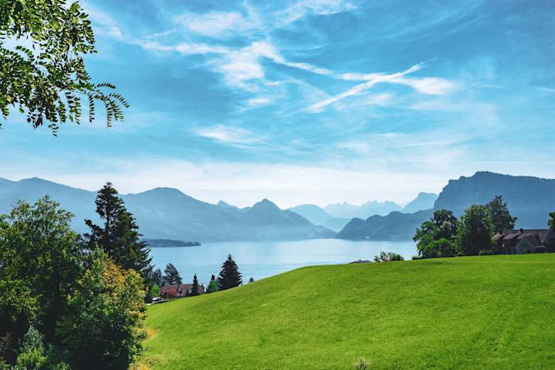 Aussicht von Alpnachstad auf den Vierwaldstättersee, Wanderung entlang des Waldstätterweg, Etappe 4 Luzern-Alpnachstad Foto: Outsideisfree.ch