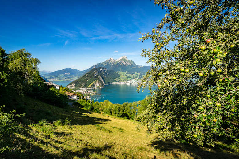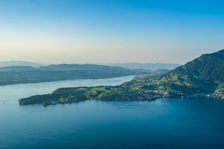 Sicht vom Schnitzturm Stansstad auf der Wanderung entlang des Waldstätterweg, Etappe 5 Alpnachstad - Bürgenstock Foto: Outsideisfree.ch