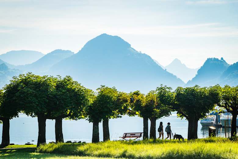 Die Etappe startet am Bahnhof von Alpnachstad. Vorbei am Bad geht es entlang des Ufers nach Rüti. Durch die Rotzlochschluch führt der Weg entlang des Mehlbachs nach Rotzloch und weiter zum Schnitzturm in Stansstad.